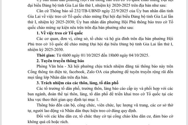 Thông báo thay đổi thời gian tiếp công dân định kỳ của Chủ tịch UBND phường Hội Phú