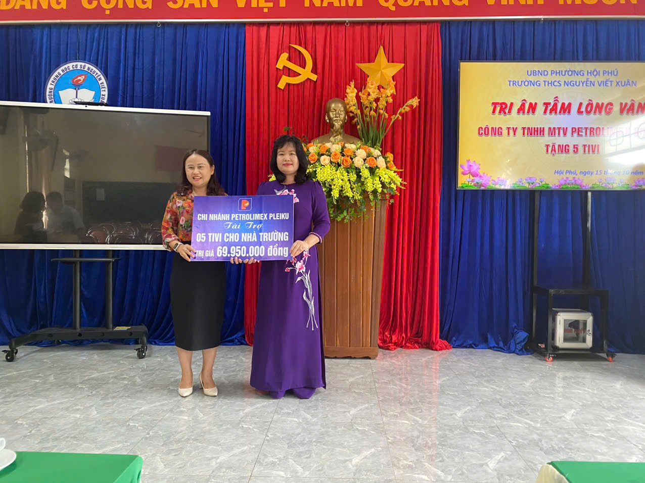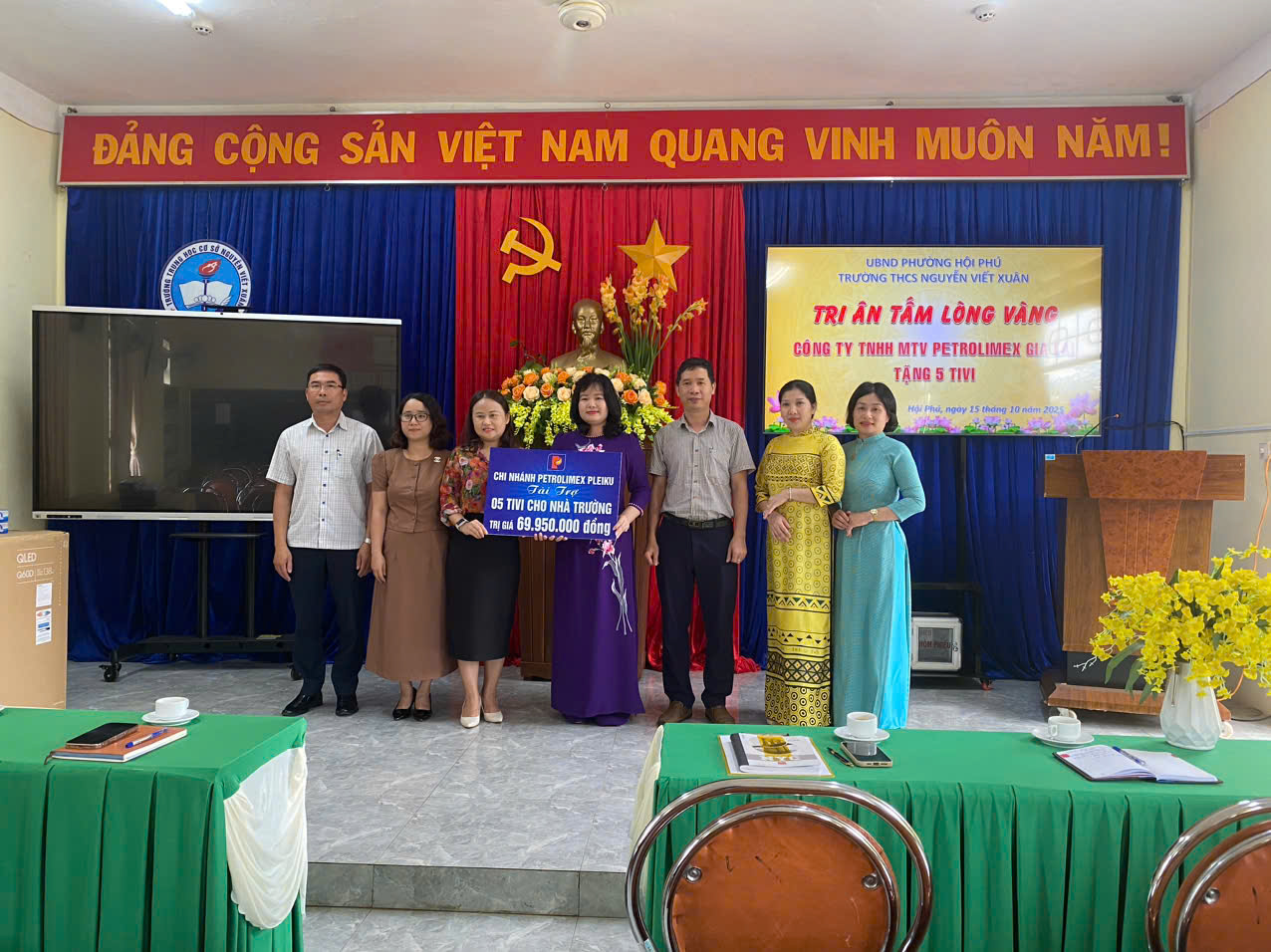 Ngày 15/10/2025, tại Trường THCS Nguyễn Viết Xuân, Chi nhánh Petrolimex Pleiku – Công ty TNHH MTV Petrolimex Gia Lai đã trao tặng 5 chiếc tivi nhằm hỗ trợ nhà trường trong công tác giảng dạy và học tập.