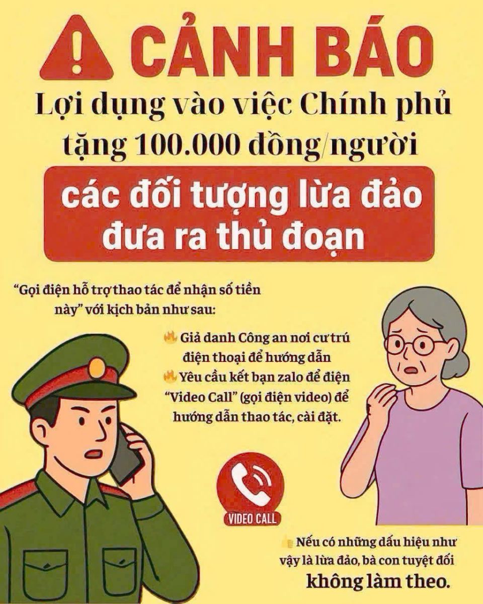 Thứ bảy, 30/08/2025 | 10:06 A- A A+ | Cảnh báo lợi dụng việc Chính phủ tặng 100/người Chia sẻ Đọc bài Lưu