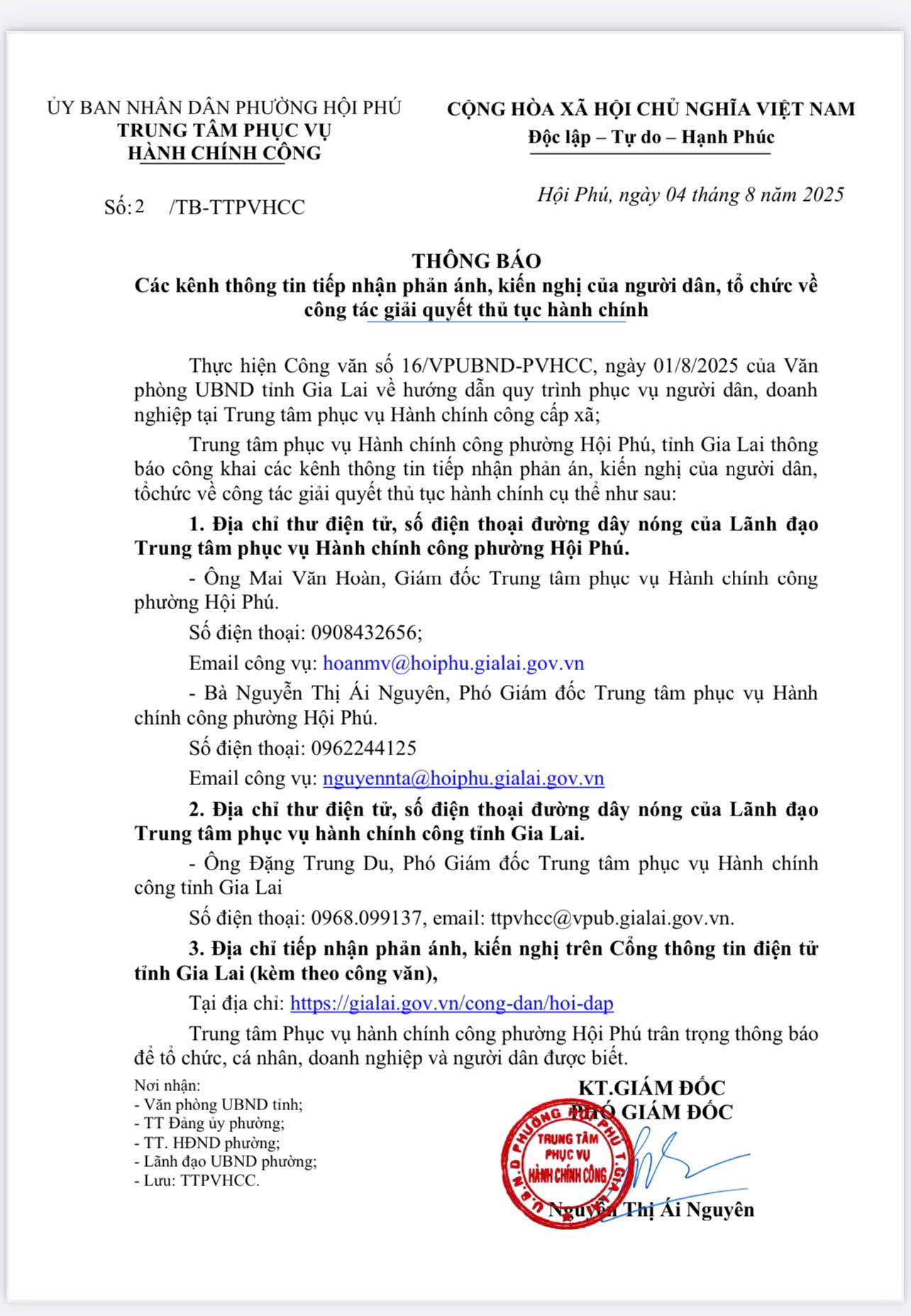 Thứ tư, 12/11/2025 | 16:40 A- A A+ | Thông báo các kênh thông tin tiếp nhận phản ánh, kiến nghị của người dân, tổ chức về công tác giải quyết thủ tục hành chính Chia sẻ Đọc bài Lưu