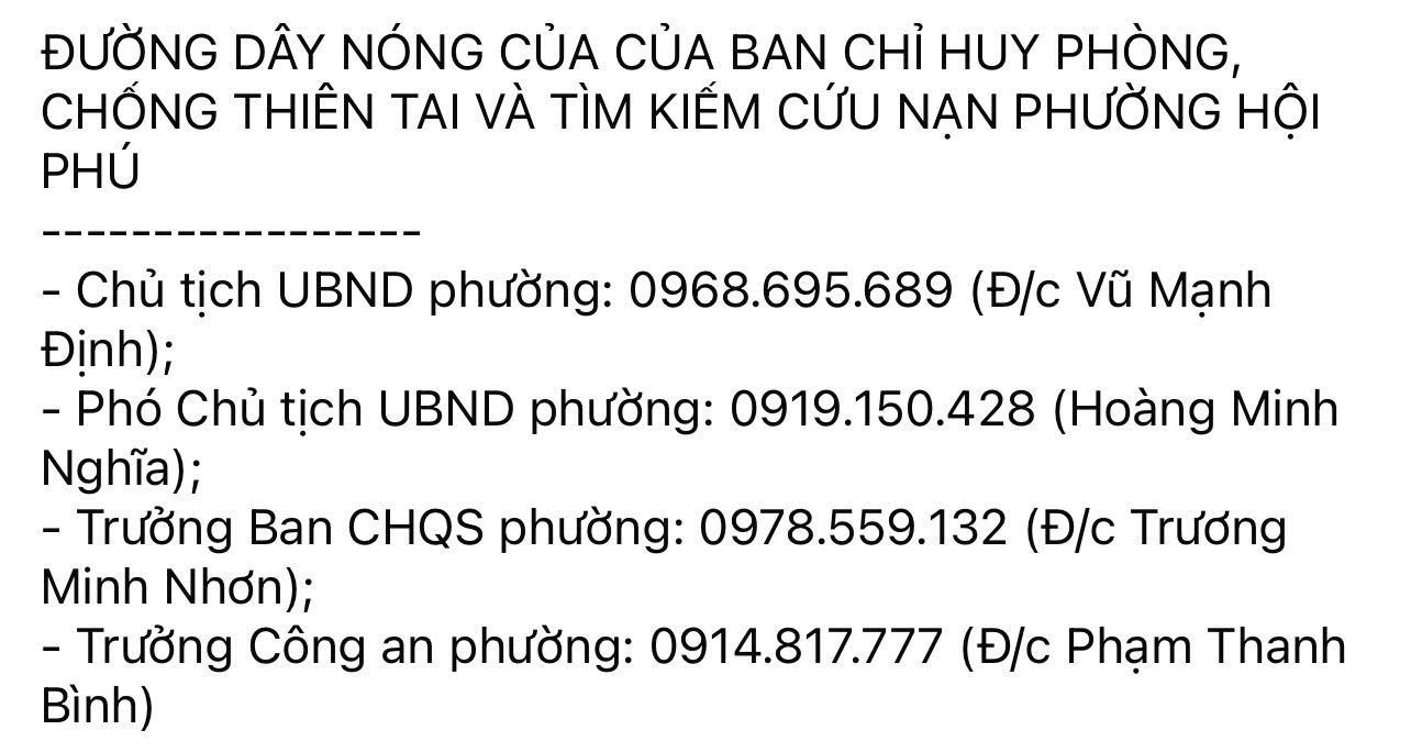 Để kịp thời ứng cứu, hỗ trợ người dân trong mọi tình huống khẩn cấp trong quá trình phòng chống thiên tai, trường hợp đột xuất cần báo cáo, đơn vị liên lạc qua các số máy: