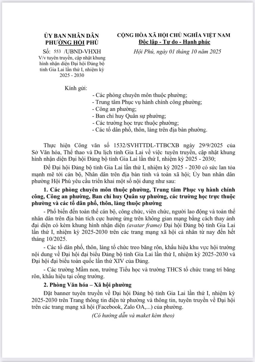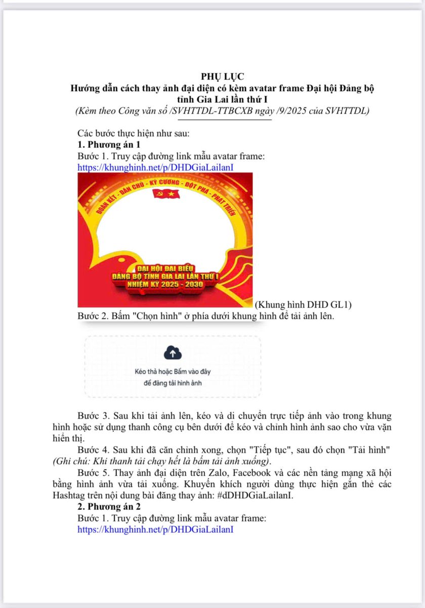 Tuyên truyền, hướng dẫn thay ảnh đại diện có kèm avatar frame Đại hội Đảng bộ tỉnh Gia Lai lần thứ I, nhiệm kỳ 2025 - 2030