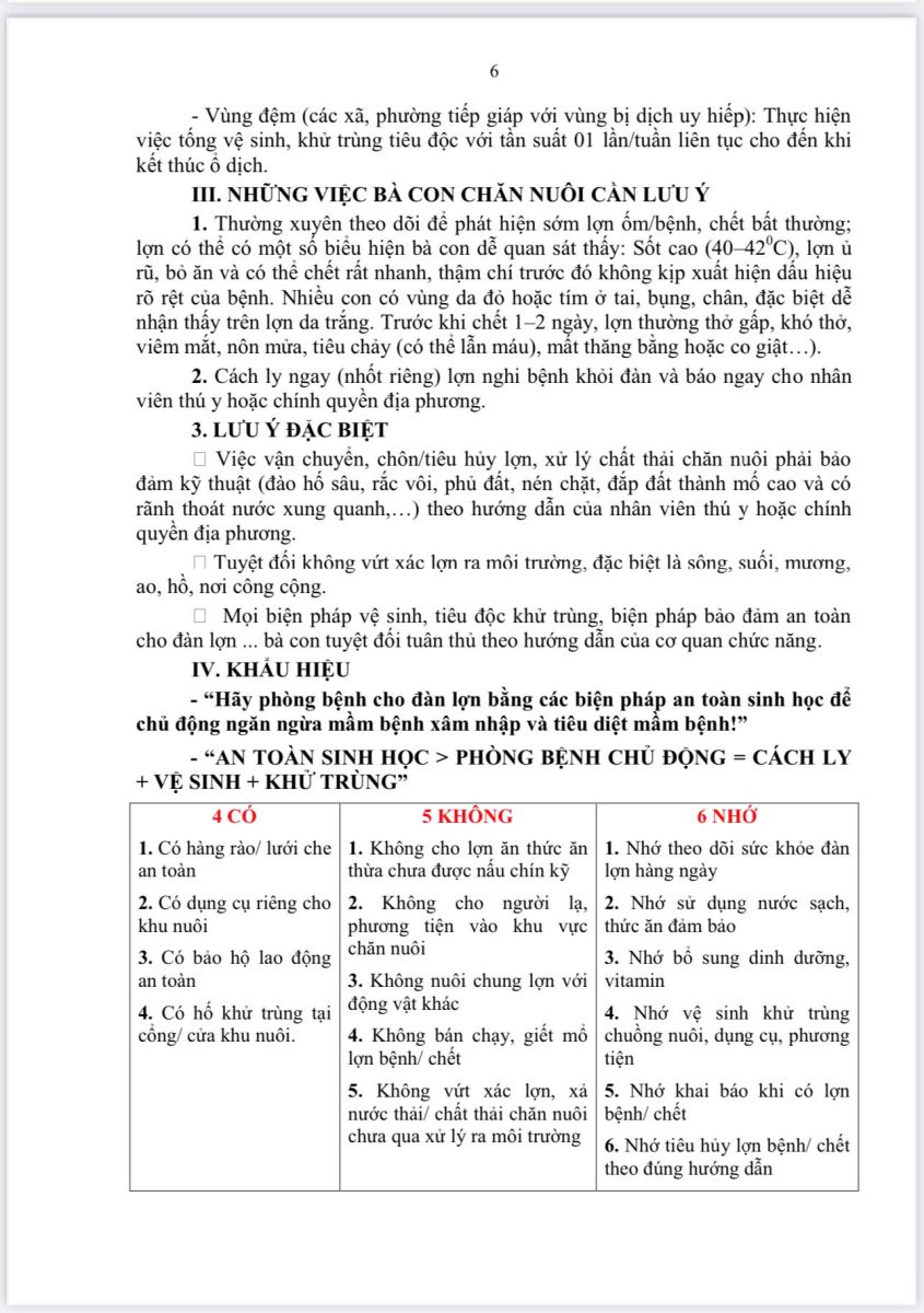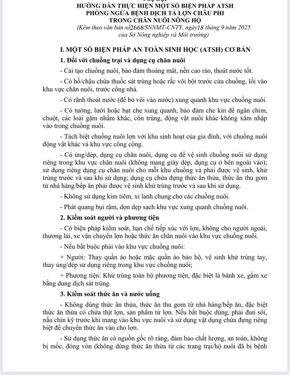 Để chủ động phòng ngừa bệnh DTLCP trong chăn nuôi nông hộ và triển khai các biện pháp an toàn sinh học để tái đàn, phòng ngừa bệnh Dịch tả lợn Châu Phi tái phát, giảm thiểu thiệt hại về kinh tế cho người chăn nuôi, Sở Nông nghiệp và Môi trường hướng dẫn thực hiện một số biện pháp ATSH để chủ động phòng ngừa bệnh Dịch tả lợn Châu phi trong chăn nuôi nông hộ.